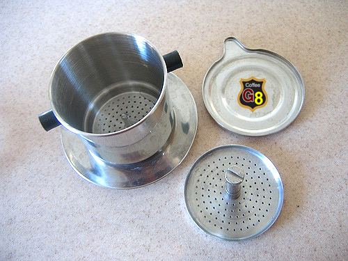 Tráng phin cà phê (tốt nhất là phin nhôm) bằng nước nóng, lau khô và cho khoảng 20 gram cà phê vào, lắc nhẹ phin đựng cà phê cho mặt trên của cà phê phẳng, đậy nắp chèn cà phê và đổ nước sôi vào. | ||